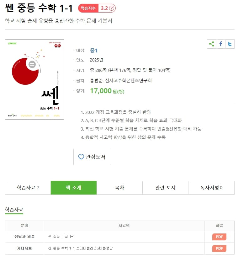 쎈 중등수학 1-1답지 자료는 좋은책 신사고 홈페이지에서 받을 수 있습니다.
