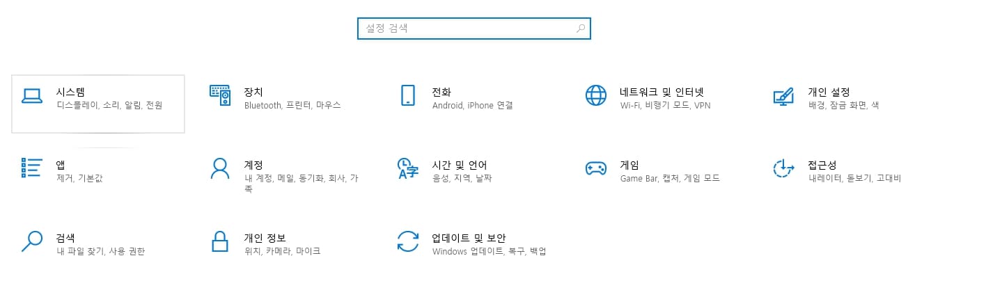 1. 윈도우 설정 실행 혹은 작업표시줄 검색창에 "설정" 입력