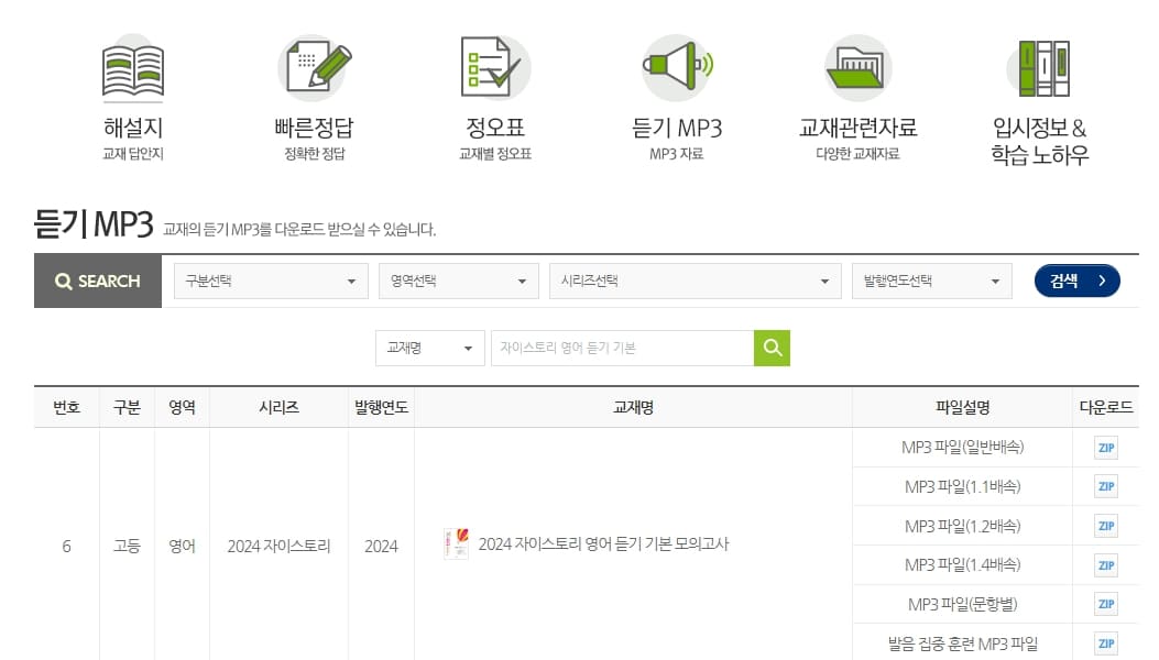 ※ 자이스토리 영어 듣기 기본 모의고사 mp3 다운로드 방법