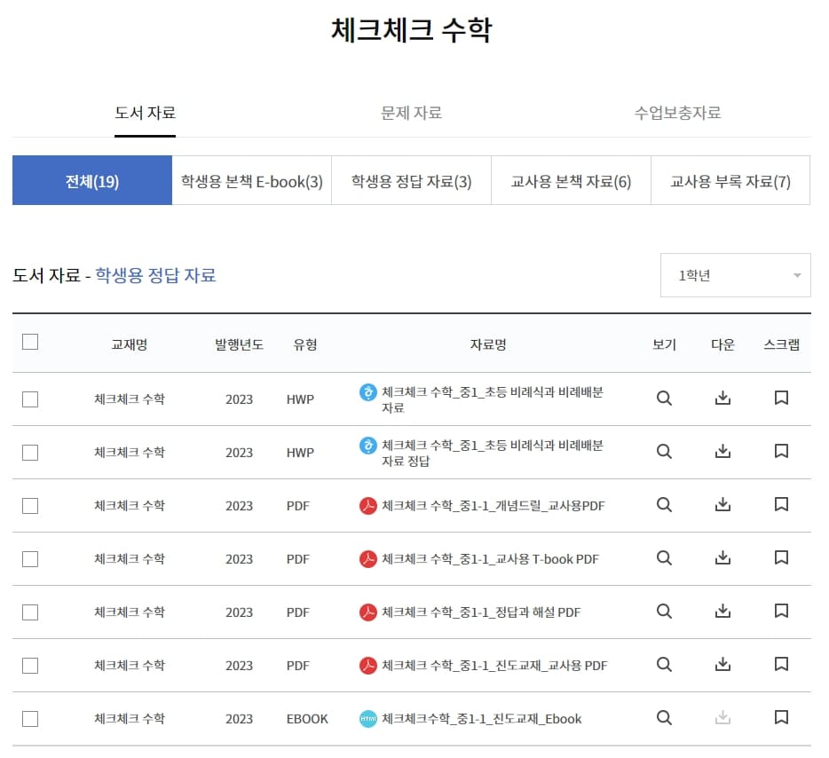 ※ 체크체크 수학 중1-1 답지 다운로드 방법